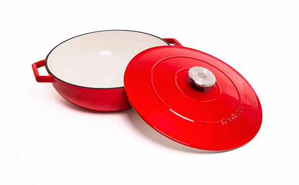 2. Featuring a smart stainless steel knob, comfortable ergonomic handles and enamelled inside and out with self-basting dots inside the lid.